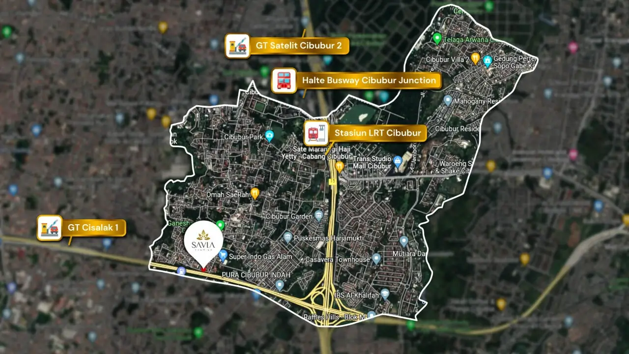Dikelilingi oleh Sarana Transportasi berupa 2 Akses Pintu Tol dan Stasiun LRT Cibubur, Dekat Mall Transpark Cibubur, serta sangat dekat dengan Pusat Kesehatan berupa Rumah Sakit ternama